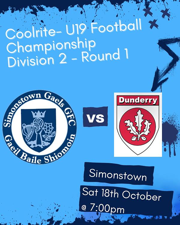 Simonstown Gaels U19s take on Dunderry in the Coolrite U19 Football Championship!