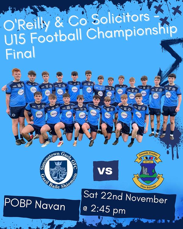 Our sky blue and navy warriors are gearing up for the O'Reilly Solicitors & Co U15 Football Championship Final this Saturday at 2:45pm in Paddy O’Brien Park, Navan! 🏐